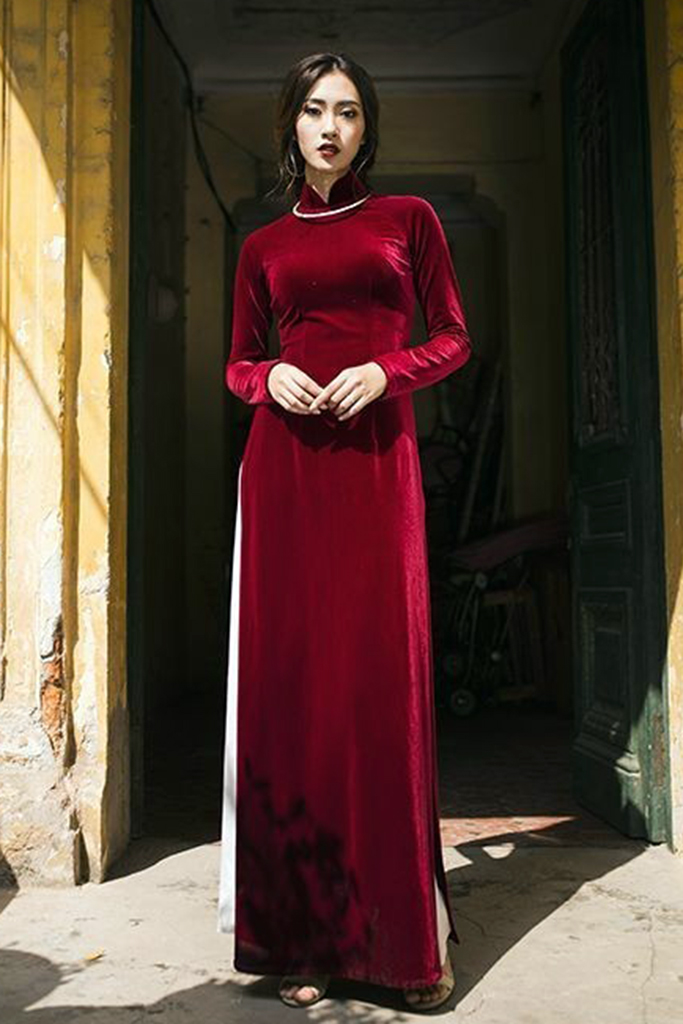 Áo dài nhung đỏ